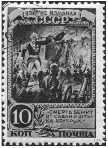 Назовите российского монарха, в период правления которого произошла война, одному из событий которой посвящена данная марка.